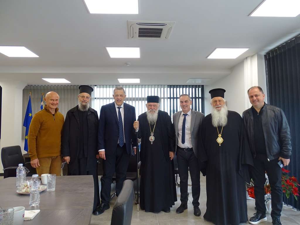 Τον Αρχιεπίσκοπο συνόδευε ο Θεοφιλέστατος Επίσκοπος Τανάγρας κ. Απόστολος, Διευθυντής του γραφείου της Εκκλησίας της Ελλάδος στην Ευρωπαϊκή Ένωση, ενώ στην συνάντηση στον Δήμο Λεβαδέων, παρέστη και ο Σεβασμιώτατος Μητροπολίτης Θηβών, Λιβαδειάς και Αυλίδος κ. Γεώργιος.