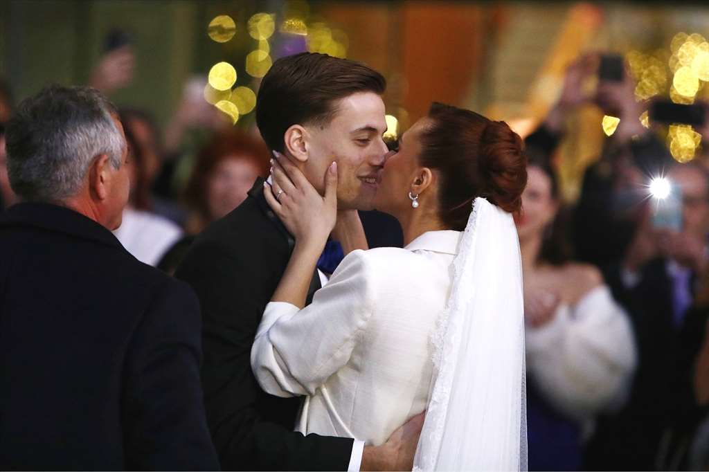 Στον πλευρό του, από την πρώτη στιγμή, ήταν οι δύο αδερφές του αλλά και η οικογένειά του, με τον «Ντέλια» να υποδέχεται περιχαρής την αγαπημένη του Χριστίνα. Μετά τον γάμο, θα ακολουθήσει δεξίωση, παρουσία πολλών συμπαικτών και φίλων του ζεύγους.