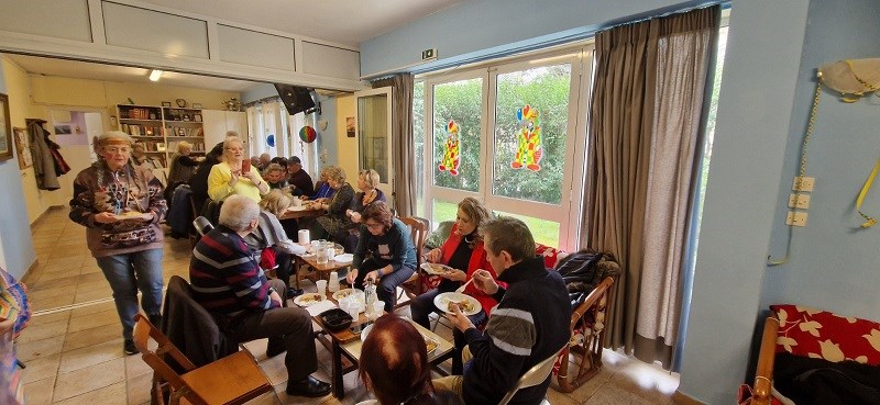 Στο γλέντι που στήθηκε στους χώρους των 4 ΚΑΠΗ Κηφισιάς και Νέας Ερυθραίας το… μενού της ημέρας, πέρα από εκλεκτούς μεζέδες και άφθονο κρασί περιείχε πολύ κέφι, χορό, γέλια, χαρά και τραγούδια.