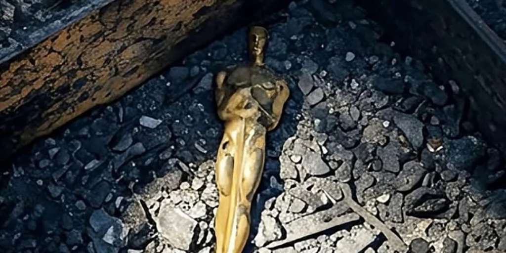 Το χρυσό αγαλματίδιο επέζησε από πυρκαγιά στο σπίτι ατόμου που προφανώς εργάζεται στη βιομηχανία του κινηματογράφου, συμβολίζοντας την καταστροφή που έχουν επιφέρει οι πυρκαγιές στην περιοχή του Λος Άντζελες.