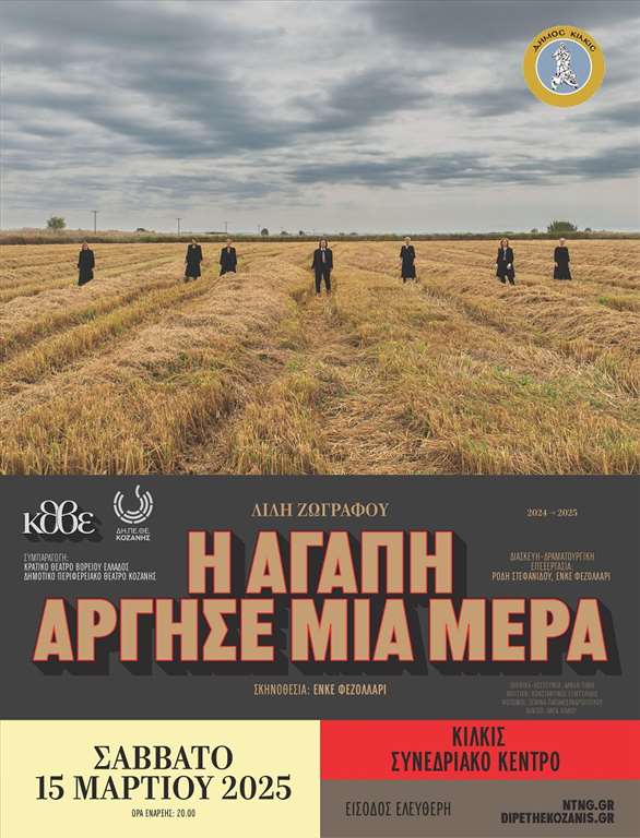 Ο Δήμος Κιλκίς φιλοξενεί τη θεατρική παράσταση ‘’Η αγάπη άργησε μια μέρα’’, σε συμπαραγωγή του Δη.Πε.Θε. Κοζάνης και του Κρατικού Θεάτρου Βορείου Ελλάδος, αυτό το Σάββατο 15 Μαρτίου, στις 20:00 στο Συνεδριακό Κέντρο Κιλκίς με ελεύθερη είσοδο για το κοινό.