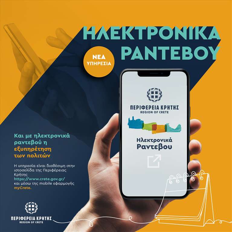 Η εφαρμογή των ηλεκτρονικών ραντεβού που τέθηκε σε πλήρη λειτουργία, αποτελεί μέρος του συνολικού σχεδιασμού για τον Ψηφιακό Μετασχηματισμό της Περιφέρειας Κρήτης, με κύριο στόχο τη βελτίωση των παρεχόμενων υπηρεσιών προς τους Πολίτες.