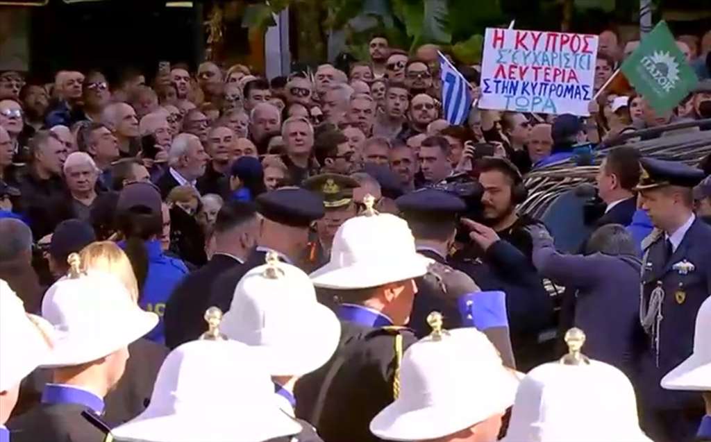 Χαρακτηριστικό είναι πως σήμερα, έξω από τη Μητρόπολη Αθηνών, όπου τελείται η εξόδιος ακολουθία του Κώστα Σημίτη, ένας άνδρας κρατάει ένα πανό με το μήνυμα «Η Κύπρος σ’ ευχαριστεί, λευτεριά στην Κύπρο μας τώρα». Σημειώνεται πως στην κηδεία του Κώστα Σημίτη δίνει το «παρών» ο Πρόεδρος της Κυπριακής Δημοκρατίας, Νίκος Χριστοδουλίδης.