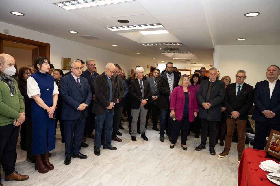 Ο Σεβασμιώτατος Αρχιεπίσκοπος Κρήτης, κ.κ. Ευγένιος ευχήθηκε σε όλους τους παρισταμένους να έχουν υγεία και καλή, ευλογημένη και δημιουργική χρονιά. Στη συνέχεια, ο Πρύτανης του Πανεπιστημίου Κρήτης Καθηγητής Γεώργιος Μ. Κοντάκης, αφού πρώτα ευχαρίστησε τον Σεβασμιώτατο Αρχιεπίσκοπο Κρήτης κ.κ. Ευγένιο για την υψηλή παρουσία του, αντάλλαξε ευχές για το νέο έτος και ευχήθηκε καταλλήλως για μια δημιουργική ακαδημαϊκή χρονιά.