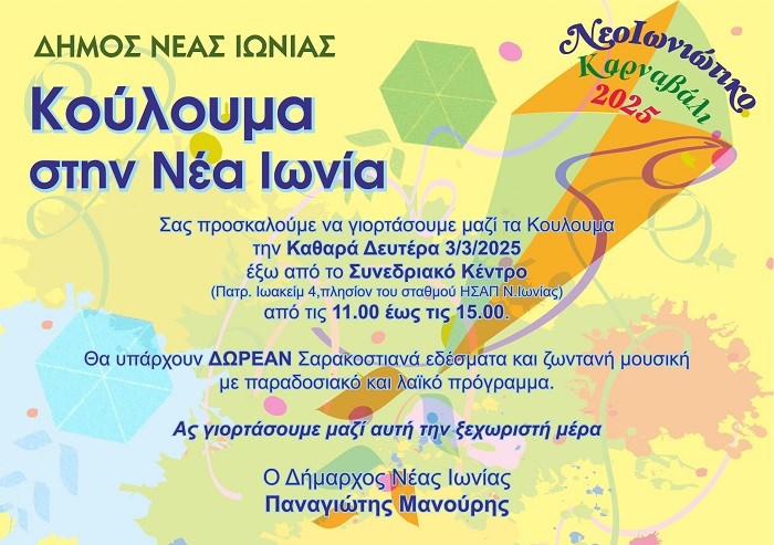 Ένα μοναδικό γλέντι ετοιμάζεται από το Δήμο Νέας Ιωνίας την Καθαρά Δευτέρα, 3/3/2025.
