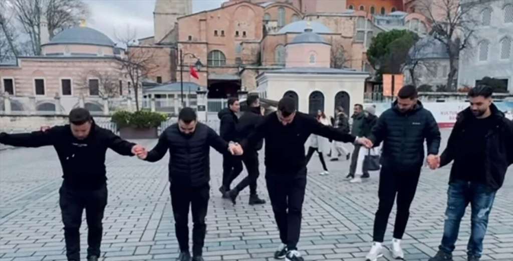 Μια πολύ όμορφη στιγμή γεμάτη από πολιτιστική περηφάνια μοιράστηκε ο λυράρης από το Ρέθυμνο, Γιάννης Γιαννακάκης, καθώς δημοσίευσε στα μέσα κοινωνικής δικτύωσης ένα βίντεο στο οποίο έξι Κρητικοί χορεύουν έξω από την Αγιά Σοφιά, στην Κωνσταντινούπολη. Οι χορευτές, όπως φαίνεται και στο βίντεο, όταν βρέθηκαν έξω από την Αγιά Σοφιά, χόρεψαν μαλεβιζιώτη.
