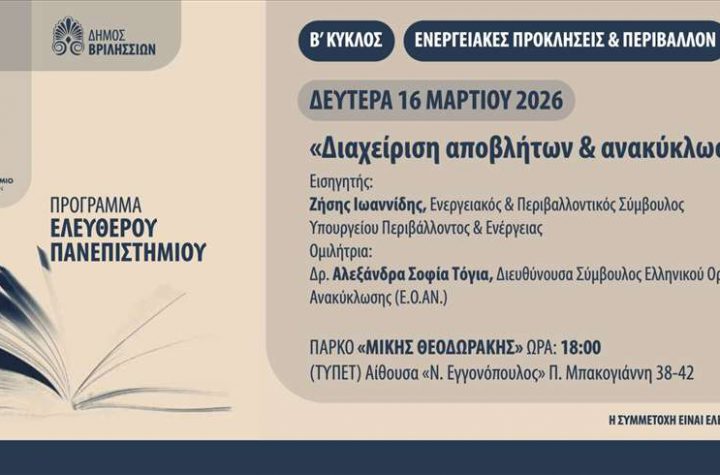 Eλ. Πανεπιστήμιο: «Διαχείριση αποβλήτων και ανακύκλωση» τη Δευτέρα 16/3 στις 18:00 στο ΤΥΠΕΤ