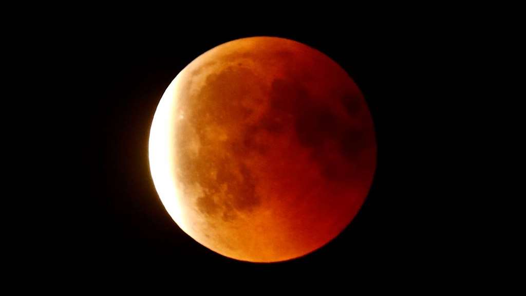 Ωστόσο, ακόμα και όταν το φεγγάρι βρίσκεται εντελώς στη σκιά της Γης, ο πλανήτης μας δεν εμποδίζει τελείως το φως του Ηλίου. Η Σελήνη παίρνει ένα κοκκινωπό χρώμα, καθώς το ηλιακό φως φιλτράρεται μέσα από τη γήινη ατμόσφαιρα με αποτέλεσμα το μπλε φως να σκεδάζεται, ενώ το κόκκινο φως να συνεχίζει την πορεία του μέχρι να φτάσει στην επιφάνεια της Σελήνης. Το πόσο κόκκινο εμφανίζεται το φεγγάρι μπορεί να εξαρτηθεί από το πόση ρύπανση ή σύννεφα υπάρχουν στην ατμόσφαιρα.