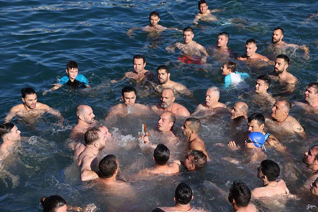 Κατά το έθιμο, μεγάλος ήταν και φέτος ο αριθμός των κολυμβητών που έπεσαν στη θάλασσα να πιάσουν το σταυρό ενώ πλήθος σκαφών δημιούργησαν μια ξεχωριστή ατμόσφαιρα στο χώρο της τελετής.