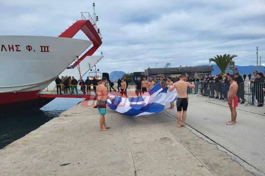 Κολυμβητές όλων των ηλικιών έπεσαν στα νερά του μόλου της Αγίου Νικολάου, στο παλαιό λιμάνι της Πάτρας για να πιάσουν τον σταυρό. Η τελετή έγινε με την παρουσία εκπροσώπων αρχών και φορέων της περιοχής. Τον Σταυρό έριξε στην θάλασσα ψάλλοντας το “Εν Ιορδάνη Βαπτιζομένου Σου Κύριε” ο Μητροπολίτης Πατρών κ. Χρυσόστομος.