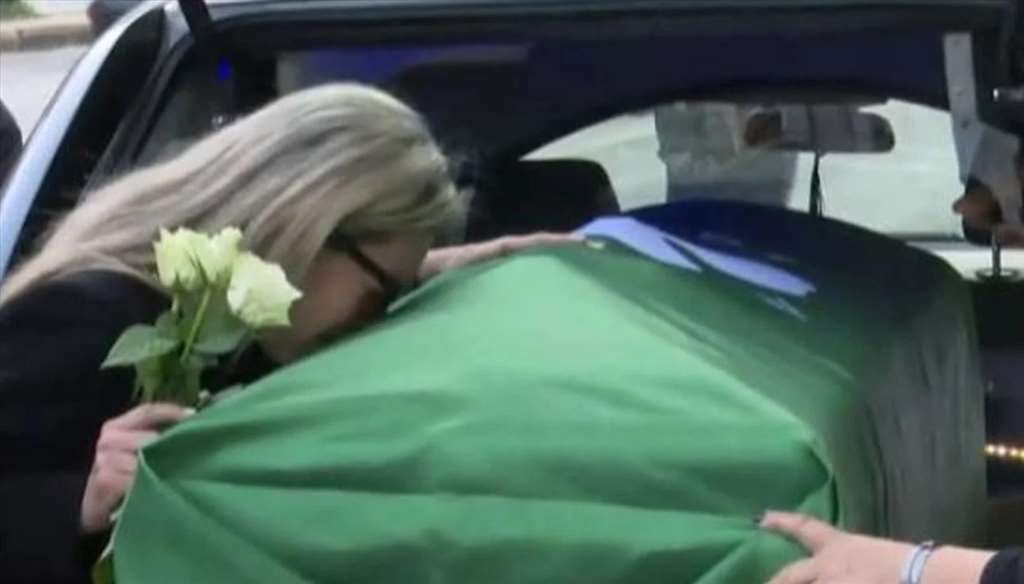 Συγκινημένη ήταν η κόρη του Μίμη Δομάζου, Πόπη έξω από το γήπεδο του Παναθηναϊκού στην Λεωφόρο Αλεξάνδρας. Μόλις το φέρετρο έφτασε έξω από το γήπεδο, η Πόπη Δομάζου γονάτισε και το φίλησε «αποχαιρετώντας» με τον δικό της τρόπο τον πατέρα της, ενώ στα χέρια της κρατούσε λευκά τριαντάφυλλα. Νωρίτερα σε δήλωσή της ανάφερε ότι «ο πατέρας μου είναι εδώ». Ευχαρίστησε όλον τον κόσμο για τη συμπαράστασή της και πρόσθεσε ότι «σήμερα η Ελλάδα θρηνεί».