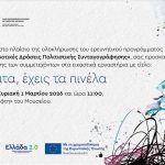 Εγκαίνια ομαδικής έκθεσης «Έχεις τα χρώματα, έχεις τα πινέλα» των συμμετεχόντων στα εικαστικά εργαστήρια της Πολιτιστικής Συνταγογράφησης