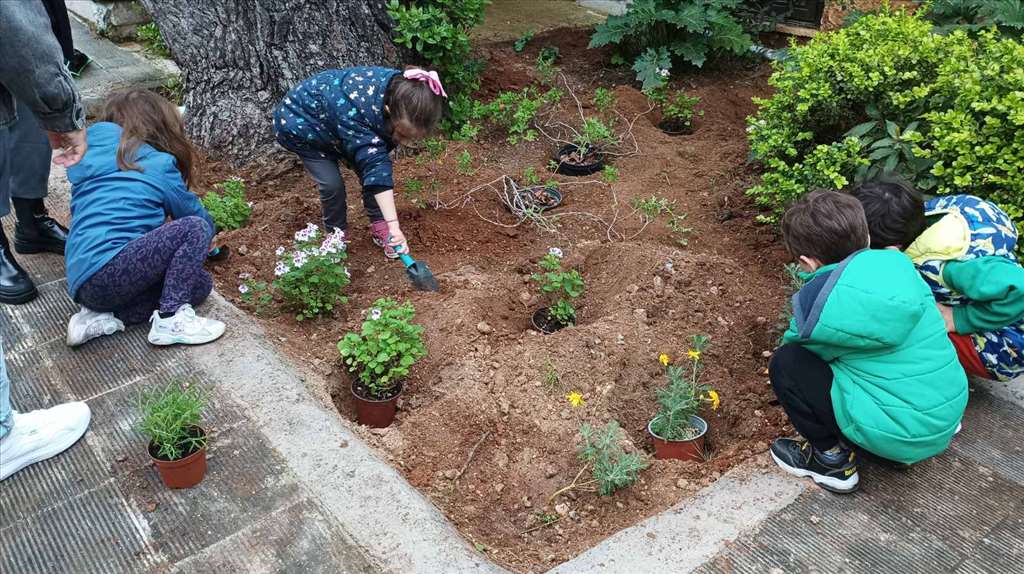 Η κορύφωση της εκπαιδευτικής δράσης ήταν η φύτευση αρωματικών φυτών στην αυλή του σχολείου, με τη συμμετοχή των υπαλλήλων της Δ/νσης Περιβάλλοντος και Πρασίνου του Δήμου Κηφισιάς. Οι μικροί μαθητές, γεμάτοι ενθουσιασμό και χαρά, υποσχέθηκαν να φροντίζουν τα φυτά τους, ενισχύοντας τη δέσμευσή τους για την προστασία του περιβάλλοντος και την αναβάθμιση του σχολικού τους χώρου.