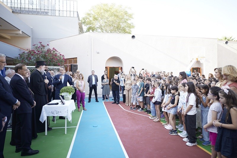 Αμέσως μετά, ο Κυριάκος Μητσοτάκης παρακολούθησε την τελετή αγιασμού, χοροστατούντος του Μητροπολίτη Νέας Ιωνίας, Φιλαδελφείας, Ηρακλείου και Χαλκηδόνος κ. Γαβριήλ. Στη συνέχεια, απευθυνόμενος στους μαθητές, τους γονείς τους και τους εκπαιδευτικούς ο Πρωθυπουργός σημείωσε: