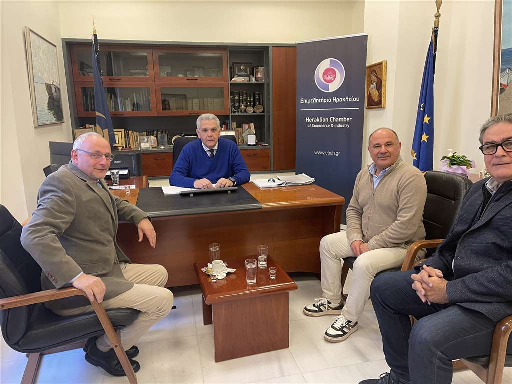 Στην εποικοδομητική συνάντηση συμμετείχαν επίσης, ο Πρόεδρος του Εξαγωγικού Τμήματος του Επιμελητηρίου Ηρακλείου κ. Μηνάς Μελισσείδης, ο Πρόεδρος της Ένωσης Ξενοδοχείων Ηρακλείου κ. Νίκος Χαλκιαδάκης και ο Πρόεδρος Τουριστικών & Ταξιδιωτικών Πρακτόρων Κρήτης κ. Μιχάλης Βλατάκης.
