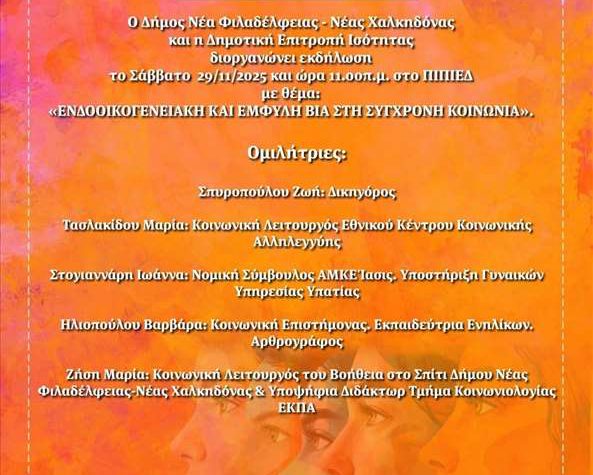 Το Τμήμα Κοινωνικής Πολιτικής και ΑμεΑ και η Επιτροπή Ισότητας του Δήμου Νέας Φιλαδέλφειας –…