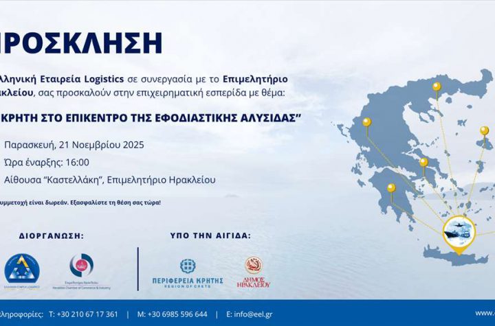 Η Ελληνική Εταιρεία Logistics (EEL), σε συνεργασία με το Επιμελητήριο Ηρακλείου, διοργανώνει επιχειρηματική εσπερίδα με…
