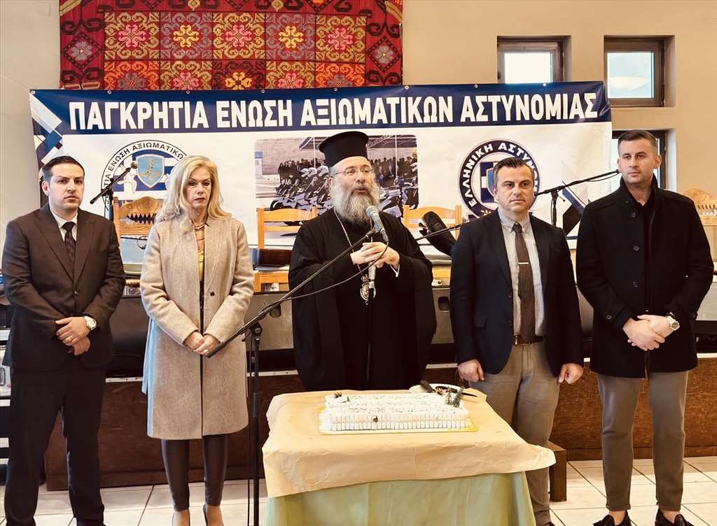 Κατά τον χαιρετισμό του ο Πρόεδρος της Ένωσης Αξιωματικών ΕΛ.ΑΣ. Περιφέ-ρειας Κρήτης Καρακούδης Στυλιανός, αναφέρθηκε αρχικά στην επιλογή από το Διοικη-τικό Συμβούλιο του ιστορικού τόπου των Ανωγείων για την κοπή της πρωτοχρονιάτικης πίτας της Ένωσης και μάλιστα τη συμβολική αυτή ημέρα της 8η Φεβρουαρίου 2025, ακρι-βώς 45 χρόνια μετά το θάνατο του Αρχάγγελου της Κρήτης Νίκου Ξυλούρη. Επίσης μνη-μόνευσε τη στάση του άλλου μεγάλου κρητικού καλλιτέχνη των Ανωγείων Βασίλη Σκουλά και ιδιοκτήτη του κέντρου Ντελίνα που πραγματοποιήθηκε η εκδήλωση, που χρόνια πρεσβεύει, κατά των άσκοπων πυροβολισμών και κατά της αλόγιστης κατανά-λωσης του αλκοόλ στα γλέντια σε συνδυασμό με την οδήγηση υπό την επίδραση οινο-πνεύματος. Για τα θέματα που αφορούν τον κλάδο, ο Πρόεδρος επισήμανε τη μεγάλη πρόσφατη επιτυχία της αναγνώρισης του επαγγέλματος του αστυνομικού ως επικίνδυνο, ένα αίτημα που η ομοσπονδία και τα πρωτοβάθμια σωματεία διεκδικούσαν τα 30 τελευ-ταία χρόνια και που επιτέλους έγινε πραγματικότητα, αναφέρθηκε στο εσχάτως ανακύ-ψαν ζήτημα της κατάργησης του αμετάθετου των Αστυνομικών Υποδιευθυντών το οποίο ευτυχώς επιλύθηκε κατόπιν άμεσης παρέμβασης της Ομοσπονδίας, για την ομόφωνη απόφαση του Δ.Σ. της Πανελλήνιας Ομοσπονδίας Αξιωματικών Αστυνομίας να προσφύ-γουν και τα 19 μέλη του Δ.Σ. ενώπιον του Διοικητικού Πρωτοδικείου για την διεκδίκηση και την παράλειψη της επαναφοράς του 13ου και 14ου μισθού, προκειμένου να επιλυθεί οριζόντια το ζήτημα, προς αποφυγή οικονομικής επιβάρυνσης των συναδέλφων. Τόνισε την προσπάθεια που καταβάλλεται προκειμένου να επεκταθεί η μάχιμη πενταετία σε επταετία με την καταβολή του ίδιου ποσού εισφοράς, καθώς και για την αναπροσαρμογή του επιδόματος ευθύνης και τον καθορισμό του επιδόματος θέσης για τους διοικητές των υπηρεσιών αντίστοιχα όπως συμβαίνει και στον υπόλοιπο δημόσιο τομέα.