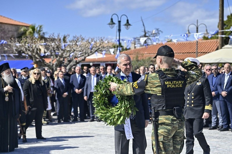 Ο Υφυπουργός Εθνικής Άμυνας και Βουλευτής Λακωνίας, Θανάσης Δαβάκης, παρέστη σήμερα, Δευτέρα 17 Μαρτίου 2025, ως εκπρόσωπος της Κυβέρνησης, στις επετειακές εκδηλώσεις του Δήμου Ανατολικής Μάνης στην Αρεόπολη, για την έναρξη της Ελληνικής Επανάστασης του 1821, συνοδευόμενος από τον Αρχηγό ΓΕΕΘΑ Στρατηγό Δημήτριο Χούπη.