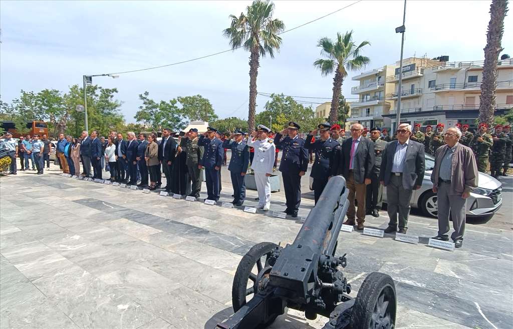 Η Περιφέρεια Κρήτης, η Αυτοδιοίκηση, θεσμικοί εκπρόσωποι, Σώματα Ασφάλειας, φορείς, εκπρόσωποι κομμάτων και πολίτες τίμησαν σήμερα την επέτειο των Εθνικών Αγώνων και της Αντίστασης κατά του ναζισμού και του φασισμού 1941-1944 (η 9η Μαΐου έχει καθιερωθεί ως ημέρα λήξης του δεύτερου Παγκοσμίου Πολέμου).