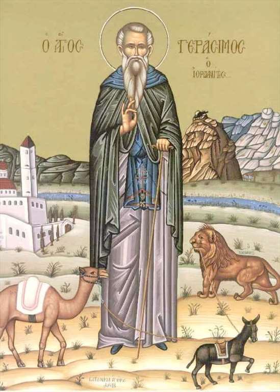 Ο Όσιος Γεράσιμος ο Ιορδανίτης γεννήθηκε στη Λυκία τον 5ο αιώνα μ.Χ. από ευσεβείς και ταπεινούς γονείς και εκ βρέφους αφιερώθηκε στον Θεό.Ο Όσιος Γεράσιμος ήταν αυστηρός, αλλά μόνο στον εαυτό του. Στους άλλους ήταν ευπροσήγορος και επιεικής.