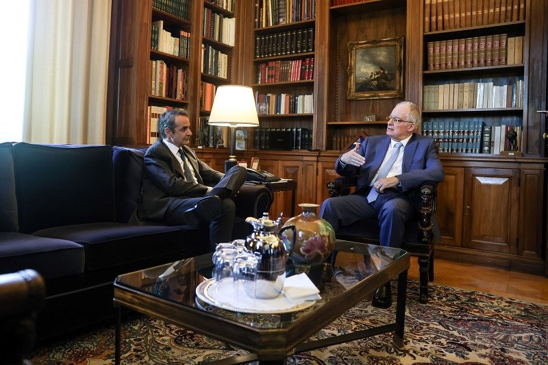 Πλαφόν στο περιθώριο κέρδους σε καύσιμα και βασικά προϊόντα σούπερ μάρκετ με χρονικό ορίζοντα τριμήνου ανακοίνωσε ο πρωθυπουργός Κυριάκος Μητσοτάκης κατά τη συνάντησή του με τον Πρόεδρο της Δημοκρατίας Κωνσταντίνο Τασούλα στο Προεδρικό Μέγαρο.