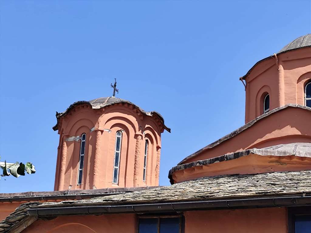 Το κλιμάκιο της Εφορείας κατά την αυτοψία στο παλαιό καθολικό, μνημείο, του τέλους του 10ου αιώνα, κατάγραφο με τοιχογραφίες του 16ου αιώνα, διαπίστωσε ότι ο σεισμός προκάλεσε έντονες ρωγμές στους τρούλους, τόσο στον κυρίως ναό, όσο και στη λιτή, ενεργοποιώντας και τις παλαιές ρωγμές, κυρίως σε τόξα που είχαν κλείσει. Οι ρωγμές, στις εσωτερικές τοιχογραφημένες επιφάνειες, προκάλεσαν, σε κάποια σημεία, ακόμα και αποκολλήσεις του ζωγραφικού στρώματος, έως και περιορισμένης κλίμακας πτώσεις επιχρισμάτων, με τοιχογραφίες. Αρκετές από αυτές τις ζημίες είχαν προκληθεί από τον σεισμό της 15ης Φεβρουαρίου 2025, ωστόσο με τον πρόσφατο σεισμό παρουσιάστηκε επιδείνωση. Η Εφορεία, άμεσα, μετά τις φθορές του σεισμού της 15ης Φεβρουαρίου, με συνεργεία συντηρητών είχε εφαρμόσει σωστικά μέτρα επί των τοιχογραφιών σε σημεία που προκλήθηκαν οι ρωγμές, προκειμένου να συγκρατηθούν αποκολλημένες ζωγραφικές επιφάνειες. Με την ενέργεια αυτή απετράπησαν οι, μεγαλύτερης έκτασης, φθορές των τοιχογραφιών.