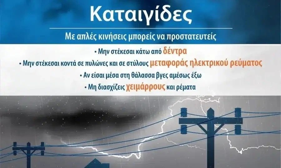 * Να αποφεύγουν τις εργασίες υπαίθρου και δραστηριότητες σε θαλάσσιες και παράκτιες περιοχές κατά τη διάρκεια εκδήλωσης των έντονων καιρικών φαινομένων (κίνδυνος από πτώσεις κεραυνών).