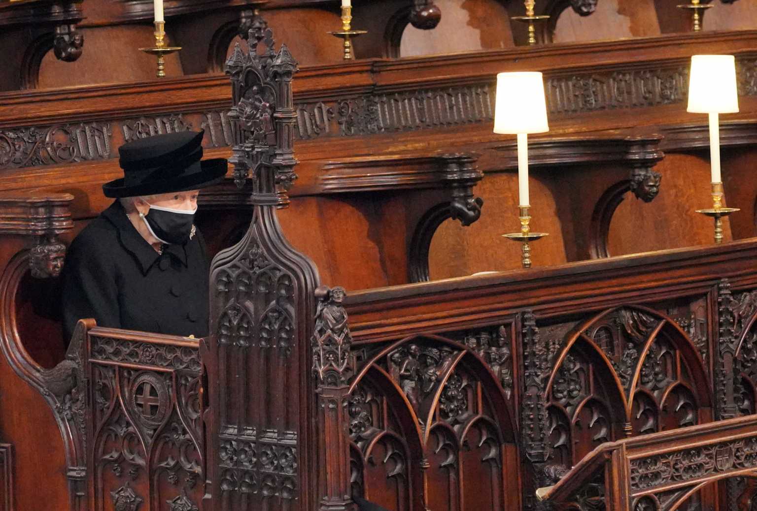 Με την άφιξη της βασίλισσας Ελισάβετ ξεκίνησε η πομπή που μετέφερε το φέρετρο του πρίγκιπα Φιλίππου στο παρεκκλήσι του Αγίου Γεωργίου για την κηδεία. Η βασίλισσα, εμφανώς συντετριμμένη, αναχώρησε από την Είσοδο του Μονάρχη με το αυτοκίνητο που είναι γνωστό ως State Bentley και έφτασε στο πίσω μέρος της πομπής.