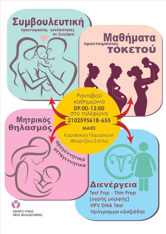 – Μητρικός θηλασμός, προγεννητικά και μετά γεννητικά, με τη συμμετοχή της παιδιάτρου κυρίας Παπαδημητροπούλου Αλεξάνδρας