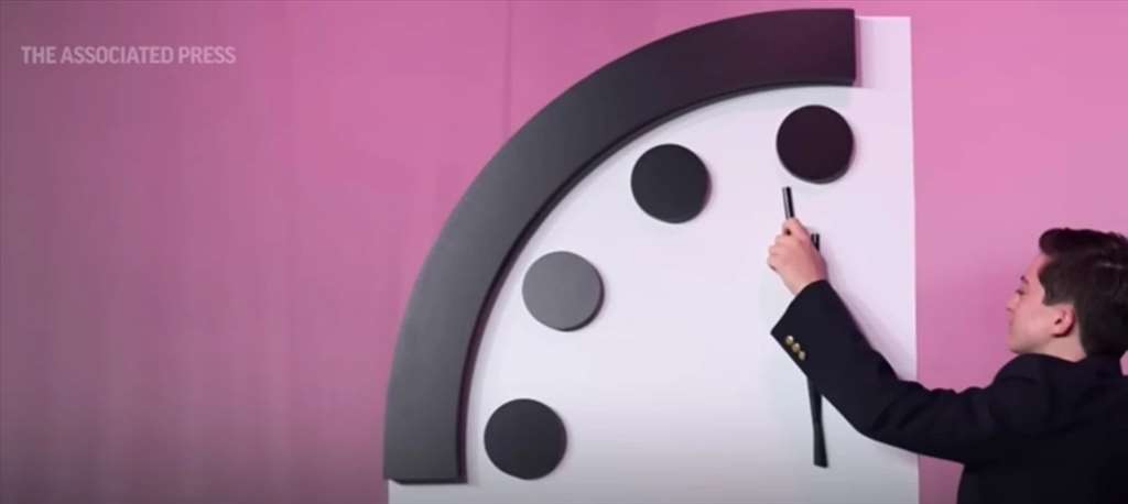 Η Επιτροπή Επιστήμης και Ασφαλείας του Bulletin of the Atomic Scientists έθεσε το ρολόι στα 89 δευτερόλεπτα πριν από τα μεσάνυχτα, που είναι το θεωρητικό σημείο του αφανισμού. Αυτό είναι ένα δευτερόλεπτο πιο κοντά από ό,τι είχε ρυθμιστεί πέρυσι.