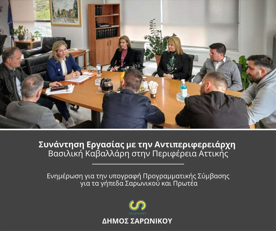 Με την Αντιπεριφερειάρχη Ανατολικής Αττικής, Βασιλική Καβαλλάρη και στελέχη της Τεχνικής Υπηρεσίας συναντήθηκε, τη Δευτέρα 7/4, ο Δήμαρχος Σαρωνικού Δημήτρης Παπαχρήστου στα γραφεία της Περιφερειακής Ενότητας Ανατ. Αττικής.