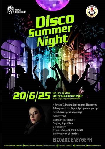 Μια καλοκαιρινή βραδιά Disco που ξυπνά μουσικές αναμνήσεις περασμένων δεκαετιών με ελεύθερη είσοδο την Παρασκευή 20 Ιουνίου 2025 και ώρα 21:00