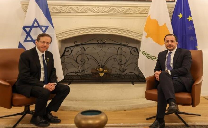 Λιγότερο από μία ώρα διήρκεσε χθες η συνάντηση του προέδρου του Ισραήλ Ισαάκ Χέρτσογκ με τον Κύπριο ομόλογο του Νίκο Χριστοδουλίδη στο Προεδρικό Μέγαρο στη Λευκωσία. Η συνάντηση έγινε χωρίς να επιτραπεί σε δημοσιογράφους και τηλεοπτικά συνεργεία να εισέλθουν στο Προεδρικό Μέγαρο και χωρίς να προηγηθούν δηλώσεις. Αναμένονται ανακοινώσεις από την Προεδρία της Κυπριακής Δημοκρατίας, παρά το ότι αρμόδιες πηγές ανέφεραν στο protothema.gr ότι οι δύο Πρόεδροι έκαναν απλώς μια ανασκόπηση της κατάστασης στην περιοχή.
