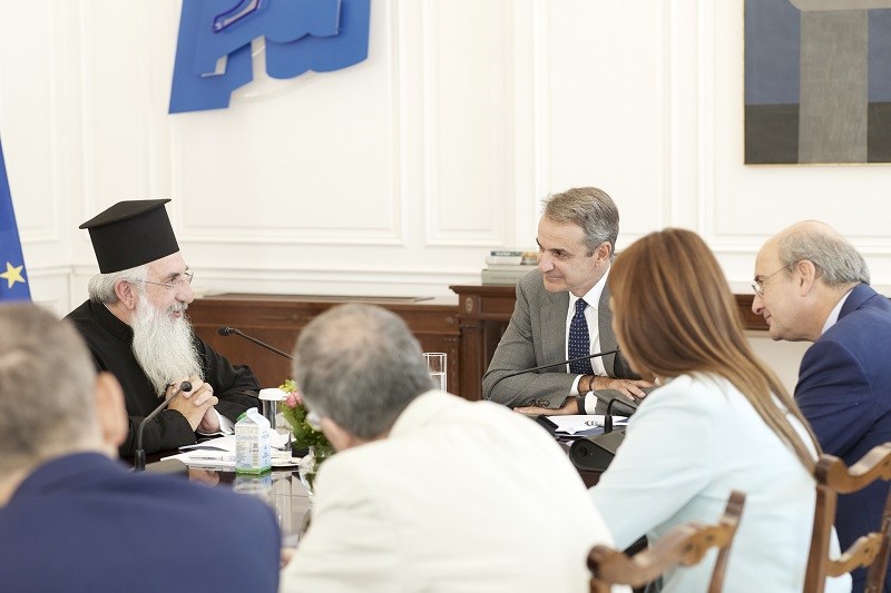 Με αντιπροσωπεία της Εκκλησίας της Κρήτης με επικεφαλής τον σεβασμιώτατο Αρχιεπίσκοπο Κρήτης κ. Ευγένιο, παρουσία του Περιφερειάρχη Κρήτης Σταύρου Αρναουτάκη, συναντήθηκε σήμερα ο πρωθυπουργός Κυριάκος Μητσοτάκης στο Μέγαρο Μαξίμου.