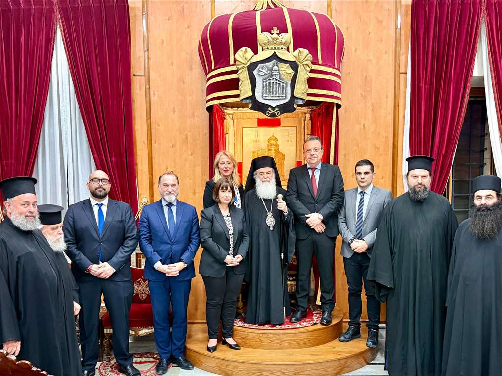 Συνάντηση με την Α.Θ.Μ. Πατριάρχη της Αγίας Πόλεως Ιερουσαλήμ και πάσης Παλαιστίνης κ.κ. Θεόφιλο τον Γ’, στο Πατριαρχείο Ιεροσολύμων πραγματοποίησε ο πρόεδρος του ΣΥΡΙΖΑ-ΠΣ, Σωκράτης Φάμελλος στο πλαίσιο της επίσκεψής του στην Ιερουσαλήμ και τη Ραμάλα, με τις δύο πλευρές να τονίζουν τον καταλυτικό, για τον Ελληνισμό, ρόλο που διαδραματίζει το Πατριαρχείο, ως πυλώνας σταθερότητας και διαλόγου.