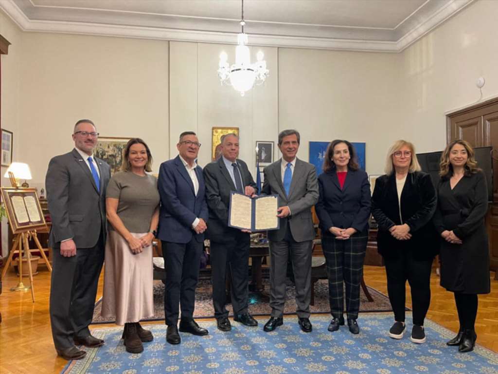 Στο κλιμάκιο του δ.σ. της ΠΑ.Δ.Ε.Ε. που επισκέφθηκε απόψε το Διοικητήριο και συναντήθηκε με τον Υφυπουργό Εσωτερικών Κ. Γκιουλέκα συμμετείχαν επίσης το μέλος της Βουλής των Αντιπροσώπων του Κονέκτικατ (ΗΠΑ) κα. Nicole Klarides-Ditria, το μέλος της Βουλής των Αντιπροσώπων της Πενσυλβάνια (ΗΠΑ) κ. Steve Malagari, το μέλος του Περιφερειακού Κοινοβουλίου του Οντάριο (Καναδάς) κα. Effie Triantafilopoulos και το μέλος του Κοινοβουλίου της Βικτώριας (Αυστραλία) κα. Kat Theophanus, καθώς επίσης και η Διευθύντρια Επικοινωνίας της Παγκόσμιας Διακοινοβουλευτικής Ένωσης Ελληνισμού κα. Ζαφειρία Καργίδου.