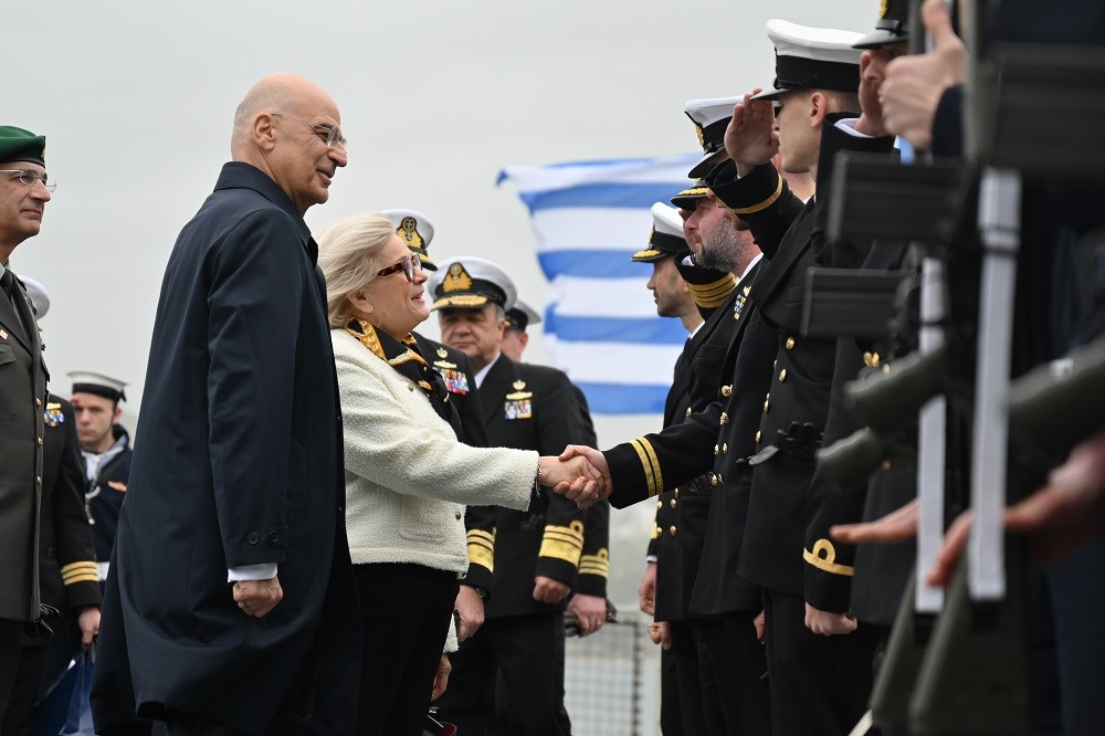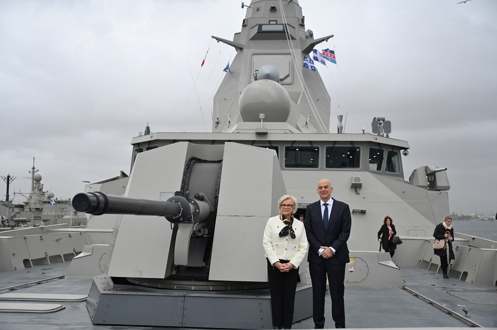 Ο κ. Δένδιας υποδέχθηκε την κ. Vautrin στον Ναύσταθμο Σαλαμίνος και ακολούθησε συνάντηση των δύο Υπουργών επί της πρώτης ελληνικής Φρεγάτας τύπου FDI-HN (“Belh@rra”) «Κίμων».