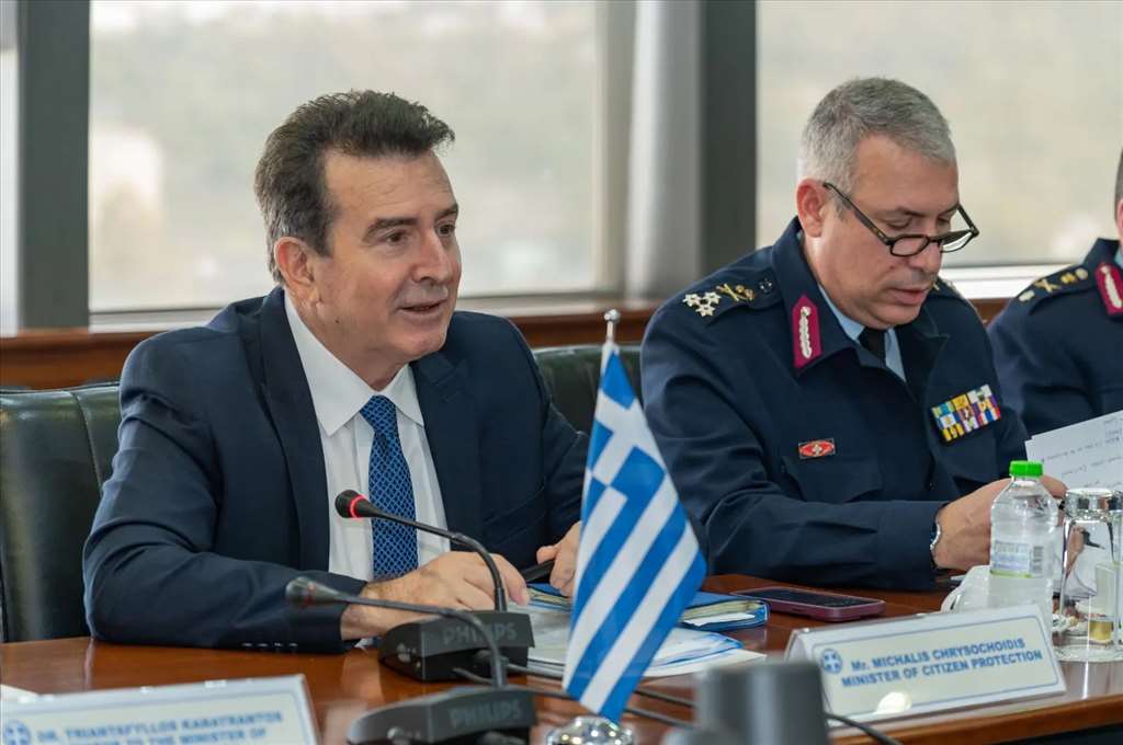 Ο Υπουργός Προστασίας του Πολίτη, Μιχάλης Χρυσοχοΐδης συναντήθηκε με τον Εκτελεστικό Διευθυντή του Οργανισμού της Ευρωπαϊκής Συνοριοφυλακής και Ακτοφυλακής, Frontex, Χανς Λέιτενς, την Τρίτη 11 Μαρτίου 2025, στο υπουργείο.