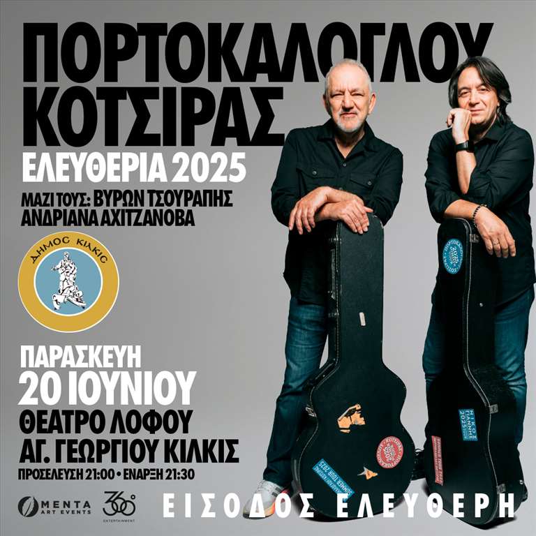 Με το ασυναγώνιστο δίδυμο της έντεχνης μουσικής Νίκο Πορτοκάλογλου και Γιάννη Κό-τσιρα, κορυφώνονται τα φετινά Ελευθέρια του Δήμου Κιλκίς.