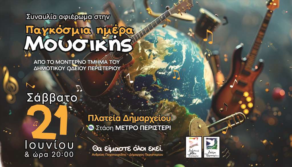 Με αφορμή την Παγκόσμια Ημέρα Μουσικής, το Μοντέρνο Τμήμα του Δημοτικού Ωδείου Περιστερίου διοργανώνει μια συναυλία το Σάββατο 21 Ιουνίου 2025 και ώρα