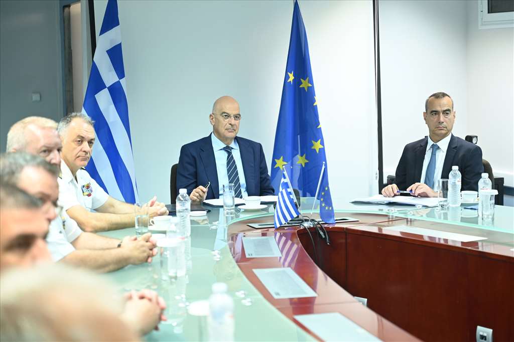 Ο κ. Δένδιας μιλώντας με τον Κυβερνήτη, τους Αξιωματικούς και το πλήρωμα της Φρεγάτας «Ψαρά» που επιχειρεί στην Ερυθρά Θάλασσα, επισήμανε ότι συμπίπτει με περιστατικά τα οποία δημιουργούν μια πολύ εύθραυστη κατάσταση στην περιοχή στην οποία περιπολούν. «Είμαι σίγουρος ότι εσείς και το πλήρωμά σας θα εκτελέσετε τα καθήκοντα όπως πάντα, με τον ύψιστο βαθμό αφοσίωσης στην αποστολή σας. Και θα ήθελα, επίσης, να πω ότι μακάρι ο Άγιος Νικόλαος, που η εικόνα του βρίσκεται πίσω σας και σας κοιτάζει από ψηλά, να φυλάει εσάς, το πλήρωμά σας και το πλοίο σας. Ο Θεός να σας έχει καλά» είπε ο Υπουργός.