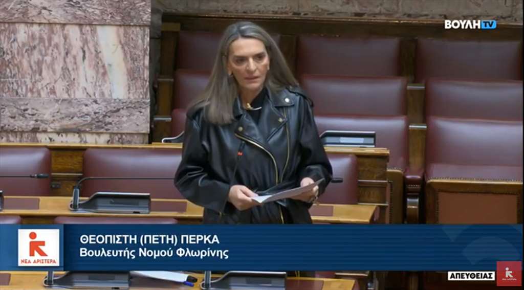 Να δεσμευτεί για τη διενέργεια ευρείας διαβούλευσης με την κοινωνία και τα υπόλοιπα κοινοβουλευτικά κόμματα σχετικά με το σχεδιασμό του Κοινωνικού Ταμείου για το Κλίμα ζήτησε από την κυβέρνηση η Βουλεύτρια Φλώρινας και Γραμματέας της ΚΟ της Νέας Αριστεράς, Πέτη Πέρκα, κατά τη συζήτηση σχετικής επίκαιρης ερώτησης.
