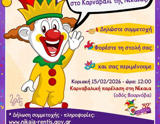 Ανοιχτή Πρόσκληση Συμμετοχής στην Καρναβαλική Παρέλαση Νίκαιας 2026