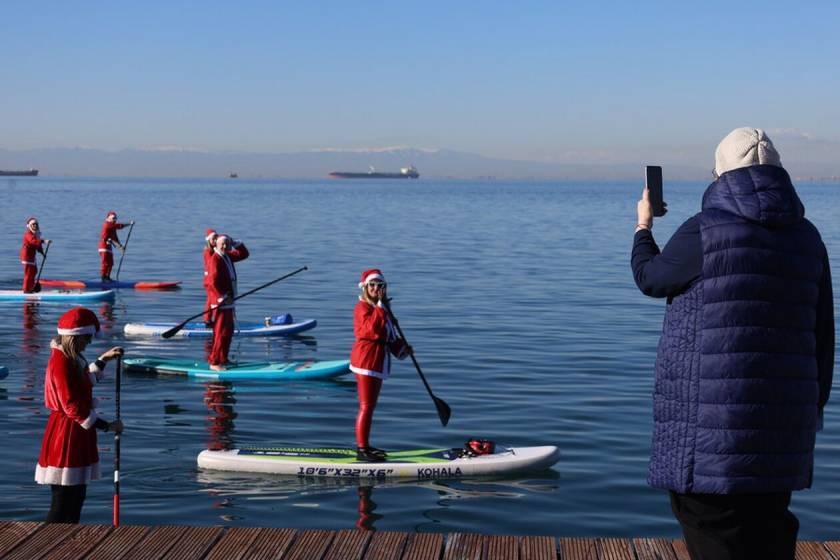Είναι έτοιμοι να φορέσουν τις κόκκινες στολές και τους σκούφους του Αϊ-Βασίλη και να κωπηλατήσουν με τις σανίδες sup στον Θερμαϊκό Κόλπο. Λάτρεις της θάλασσας θα ξεκινήσουν το κουπί από τον Λευκό Πύργο και θα «σκίσουν» τα νερά μπροστά από το λιμάνι της πόλης, στο πλαίσιο του 4oυ SANTA SUP, που θα πραγματοποιηθεί την Κυριακή 22 Δεκεμβρίου, στις 11.00, στη Θεσσαλονίκη. Με χαμόγελα και γιορτινά τραγούδια, άνδρες και γυναίκες, που αγαπούν την όρθια σανιδοκωπηλασία θα μπουν στη θάλασσα και θα δώσουν ένα διαφορετικό τόνο στην πόλη. Την πρωτότυπη εκδήλωση διοργανώνει για τέταρτη συνεχή χρονιά η ομάδα ThesSup.gr που βρίσκεται στο Ναυτικό Όμιλο Θεσσαλονίκης, στην οδό Σοφούλη.