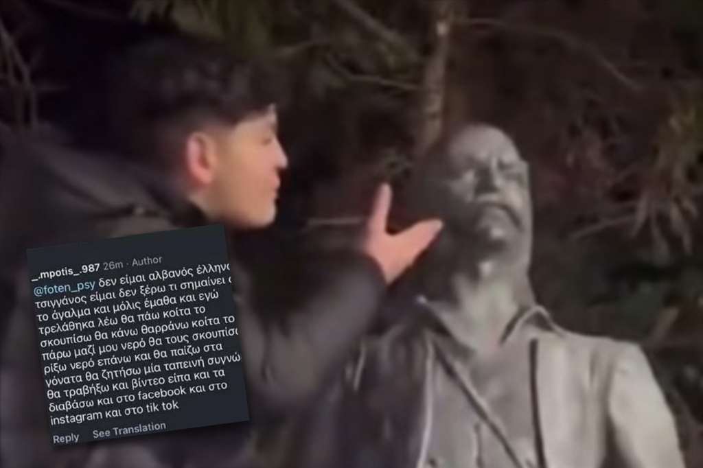 Συγκεκριμένα ο νεαρός σχολίασε: “Δεν είμαι Αλβανός. Έλληνας τσιγγάνος είμαι και δεν ήξερα τι σημαίνει το άγαλμα. Μόλις το έμαθα κι εγώ τρελάθηκα. Λέω θα πάω εκεί να το σκουπίσω. Θα πάρω μαζί μου νερό να το σκουπίσω. Θα πέσω στα γόνατα και θα ζητήσω μια ταπεινή συγγνώμη. Θα τραβήξω και βίντεο και θα το ανεβάσω στο Facebook, στο Instagram και στο Tiktok”.