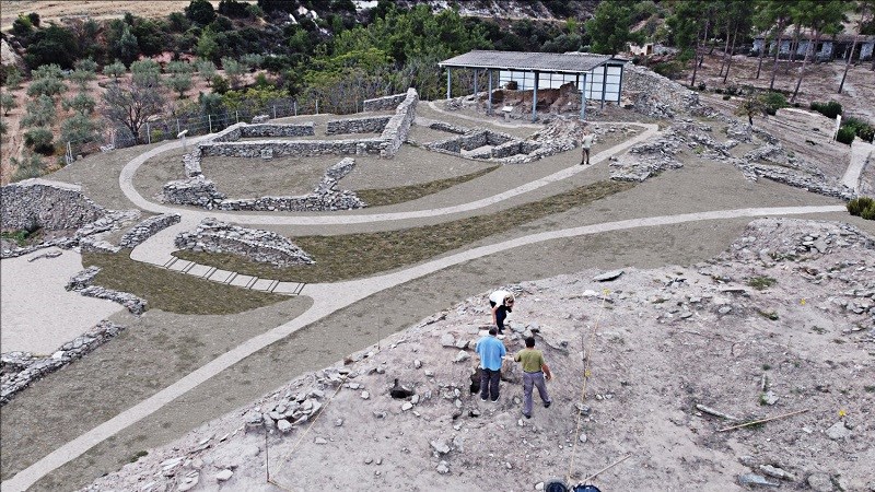 Με βάση τα συμπεράσματα της στατικής μελέτης στερέωσης, αποκατάστασης και ανάδειξης των οικοδομικών καταλοίπων επεκτείνεται ο υπάρχων τοίχος αντιστήριξης, αποκαθίσταται ο λόφος στη θέση της νότιας κατολίσθησης και η ενισχύεται η υποθεμελίωση κατασκευών. Η μελέτη αποστράγγισης για τη διαχείριση των επιφανειακών υδάτων των οικοδομικών καταλοίπων περιλαμβάνει την προστασία του αρχαιολογικού χώρου από τις πλημμυρικές απορροές, τη διαχείριση των επιφανειακών απορροών στα οικοδομικά κατάλοιπα των προϊστορικών οικισμών καθώς και στους υπόλοιπους χώρους. Παράλληλα, δρομολογείται η εκπόνηση ειδικής φυτοτεχνικής μελέτης, η οποία περιλαμβάνει σχέδιο διαχείρισης της αυτοφυούς βλάστησης στην περιοχή των οικοδομικών καταλοίπων, με στόχο την αξιοποίηση ειδών που προστατεύουν από την επιφανειακή διάβρωση και αναδεικνύουν τα κατάλοιπα, καθώς και την προσθήκη κατάλληλης καλλωπιστικής βλάστησης που να εξυπηρετεί λειτουργικούς σκοπούς όπως η σκίαση σε κατάλληλα σημεία, η ανάδειξη οδεύσεων και ορίων.