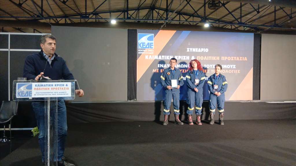 Νωρίτερα στο πλαίσιο του Θεματικού Συνεδρίου που διοργάνωσε η Κεντρική Ένωση Δήμων Ελλάδας (ΚΕΔΕ) με θέμα: «Κλιματική Κρίση και Πολιτική Προστασία – Ενδυναμώνοντας τους Δήμους με εκπαίδευση και νέες τεχνολογίες» ο Δήμαρχος Κηφισιάς, & Πρόεδρος του ΣΠΑΠ βράβευσε για την πολύτιμη προσφορά τους το δημοτικό Εθελοντικό Πυροσβεστικό Κλιμάκιο Κηφισιάς και την Ομάδα Εθελοντών Δασοπυροσβεστών Διασωστών «Εκάλη – 2000».