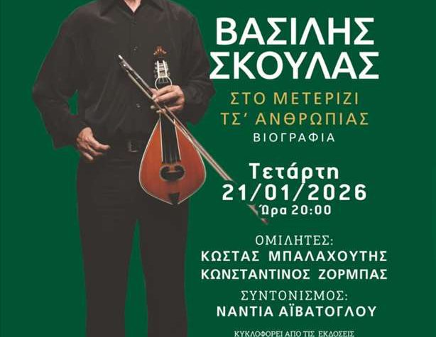 Βασίλης Σκουλάς: Παρουσίαση της βιογραφίας του στα Χανιά