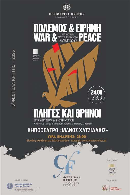 Το Φεστιβάλ της Περιφέρειας Κρήτης συνεχίζοντας τη συνεργασία του με το Φεστιβάλ Μουσικής Δωματίου Χανίων, σχεδίασαν και υλοποιούν για πρώτη φορά συναυλία εκτός της Π.Ε. Χανίων και συγκεκριμένα μια “avant première” στο Κηποθέατρο «Μ. Χατζιδάκις» στο Ηράκλειο την Κυριακή 24 Αυγούστου στις 21:00